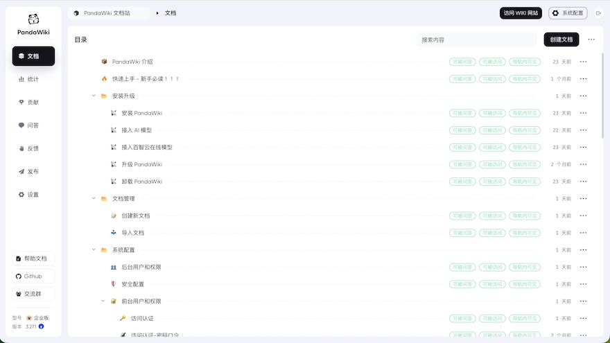 PandaWiki 是一款 AI 驱动的开源知识库系统,支持构建产品文档、技术文档、FAQ 和博客,提供AI创作、问答和搜索功能